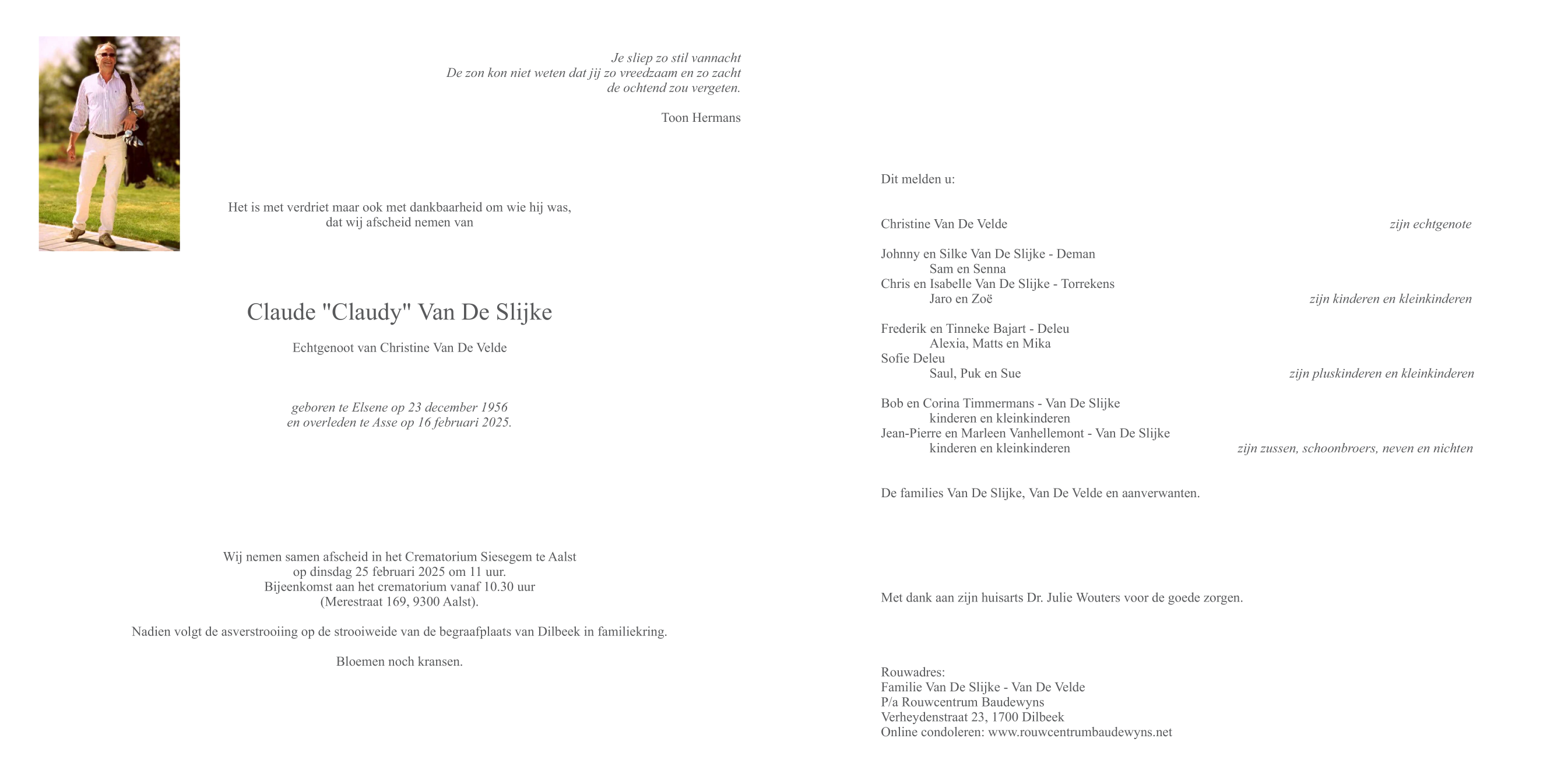 Mijnheer Claude "Claudy" Van De Slijke