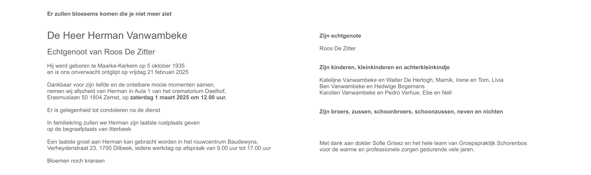 Décédé à Sint-Gillis (1060) le vendredi 21 février 2025 à l'âge de 89 ans
