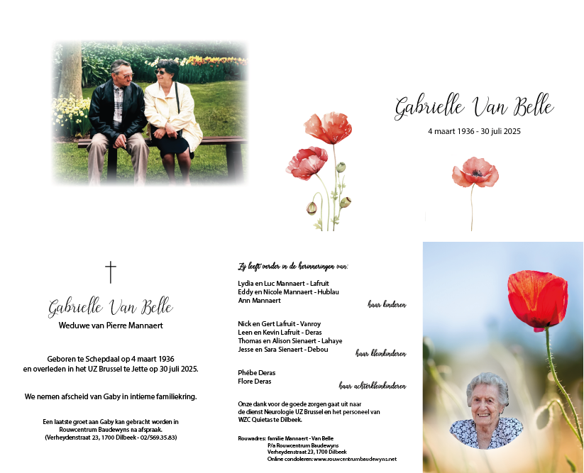 Décédée à Jette (1090) le mercredi 30 juillet 2025 à l'âge de 89 ans