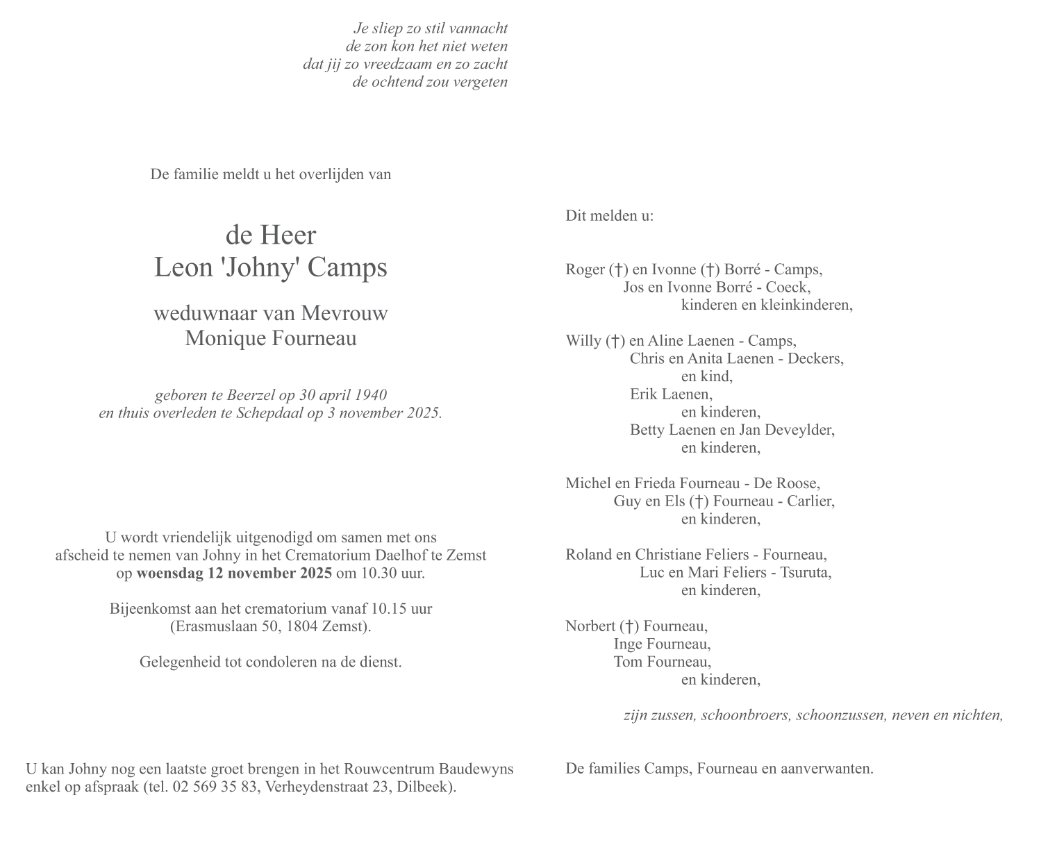 Décédé à Schepdaal (1703) le lundi 3 novembre 2025 à l'âge de 85 ans