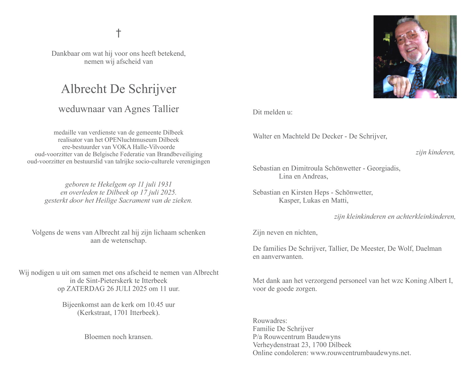 Overleden te Dilbeek (1700) op donderdag 17 juli 2025 op 94-jarige leeftijd