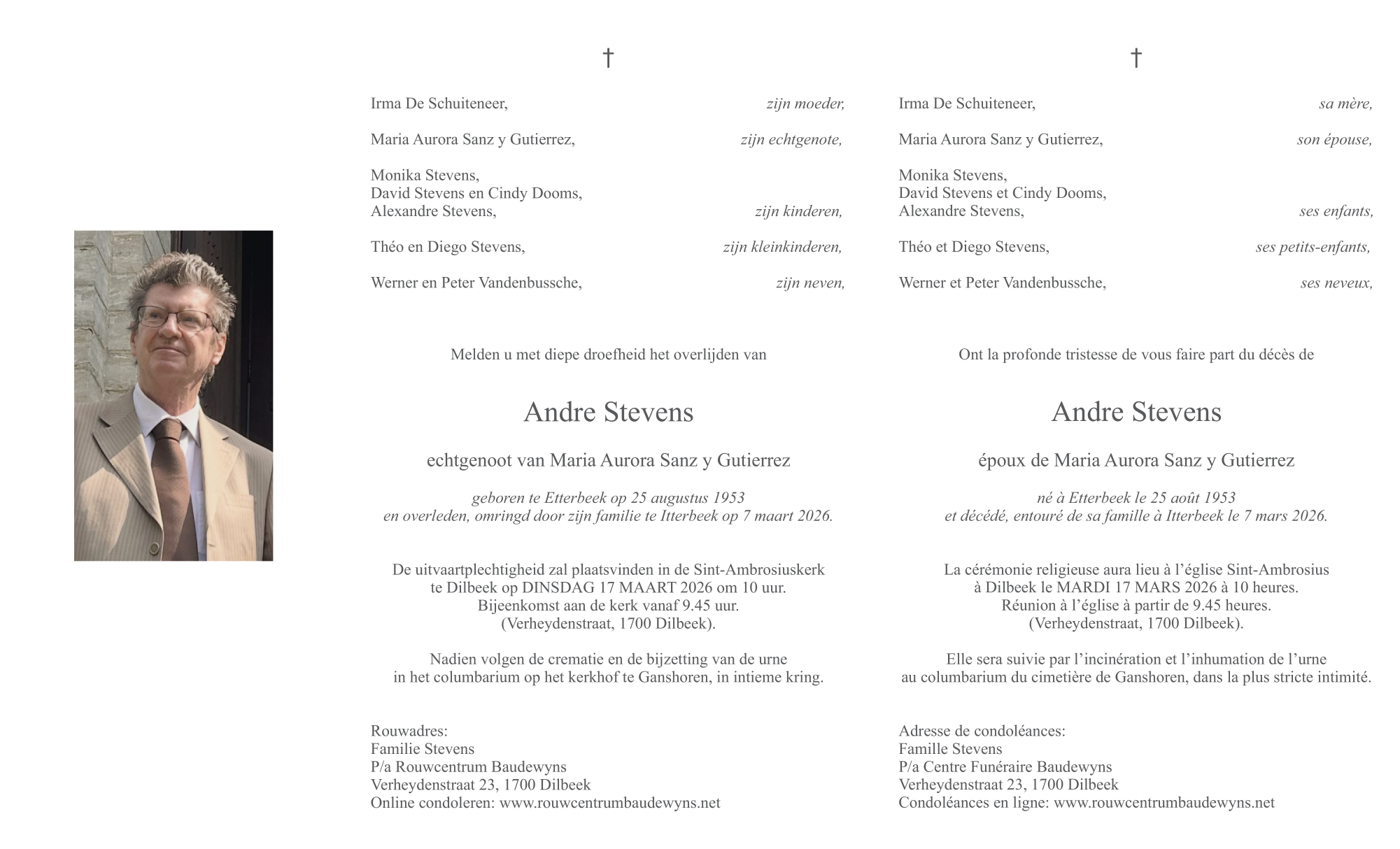 Décédé à Itterbeek (1701) le samedi 7 mars 2026 à l'âge de 72 ans
