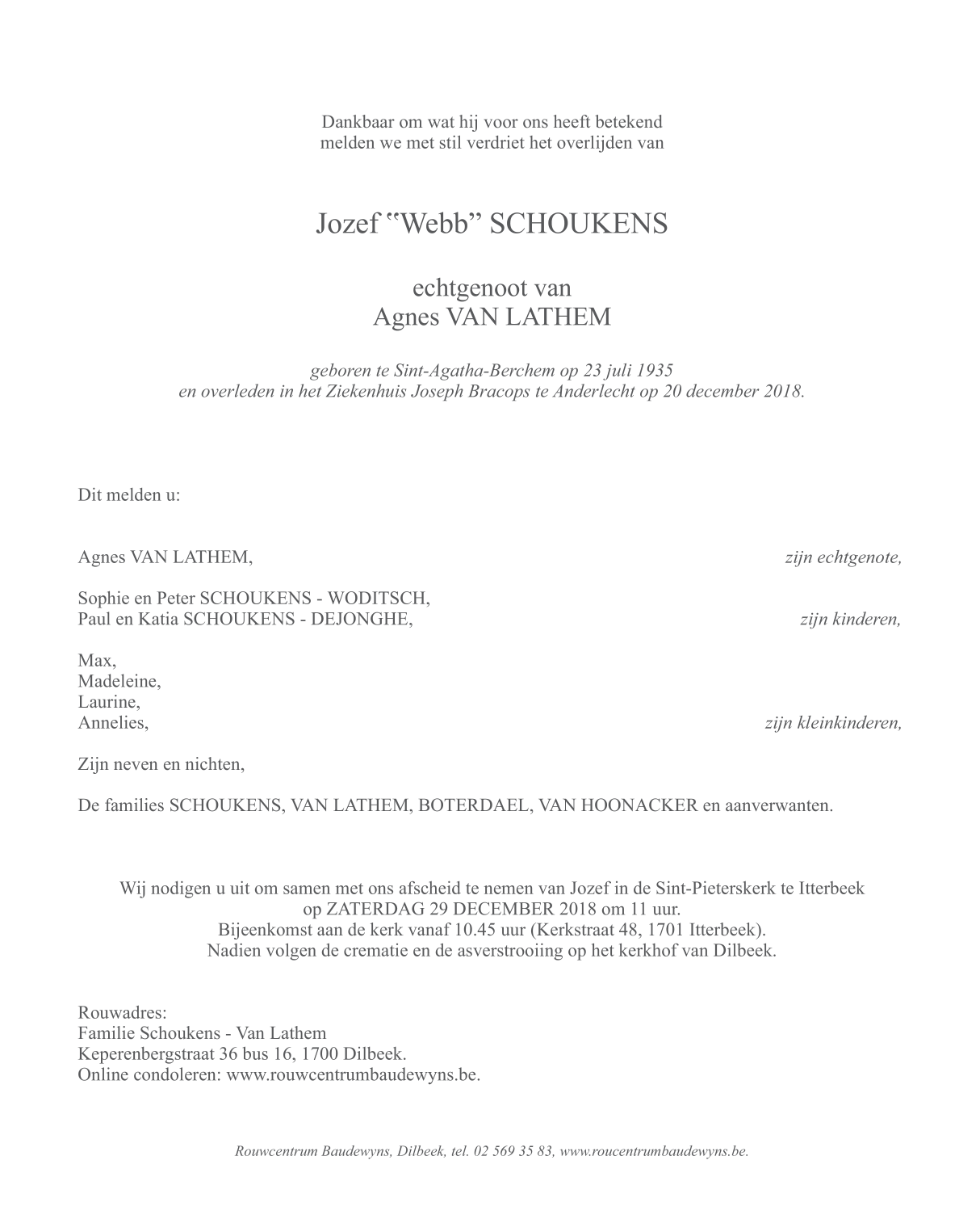 Décédé à Anderlecht (1070) le jeudi 20 décembre 2018 à l'âge de 83 ans