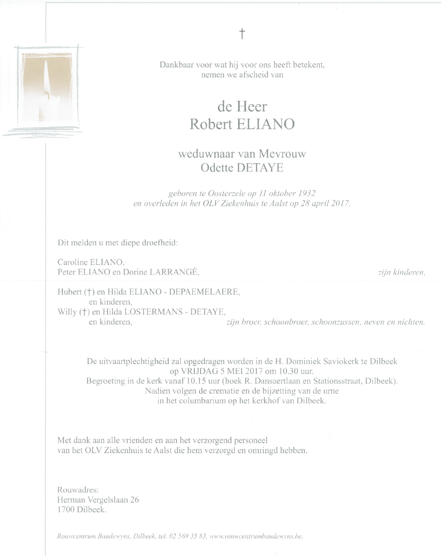 Décédé à Aalst (9300) le vendredi 28 avril 2017 à l'âge de 84 ans