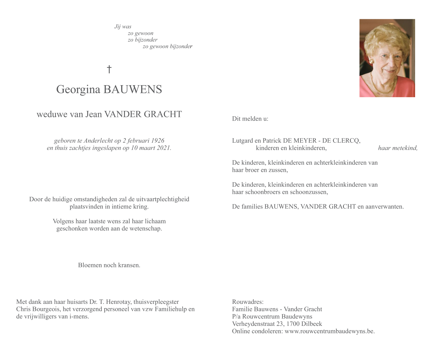 Décédée à Dilbeek (1700) le mercredi 10 mars 2021 à l'âge de 95 ans