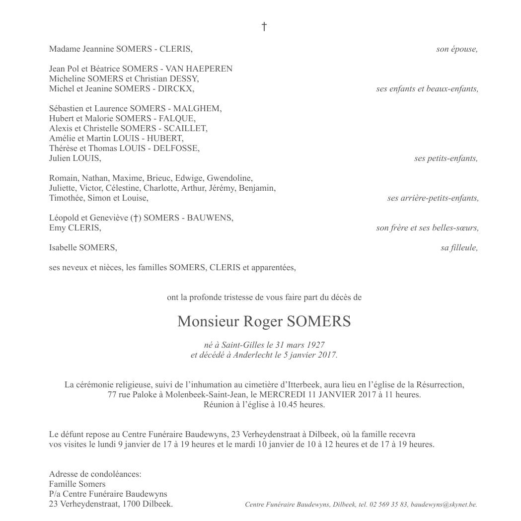 Décédé à Anderlecht (1070) le jeudi 5 janvier 2017 à l'âge de 89 ans