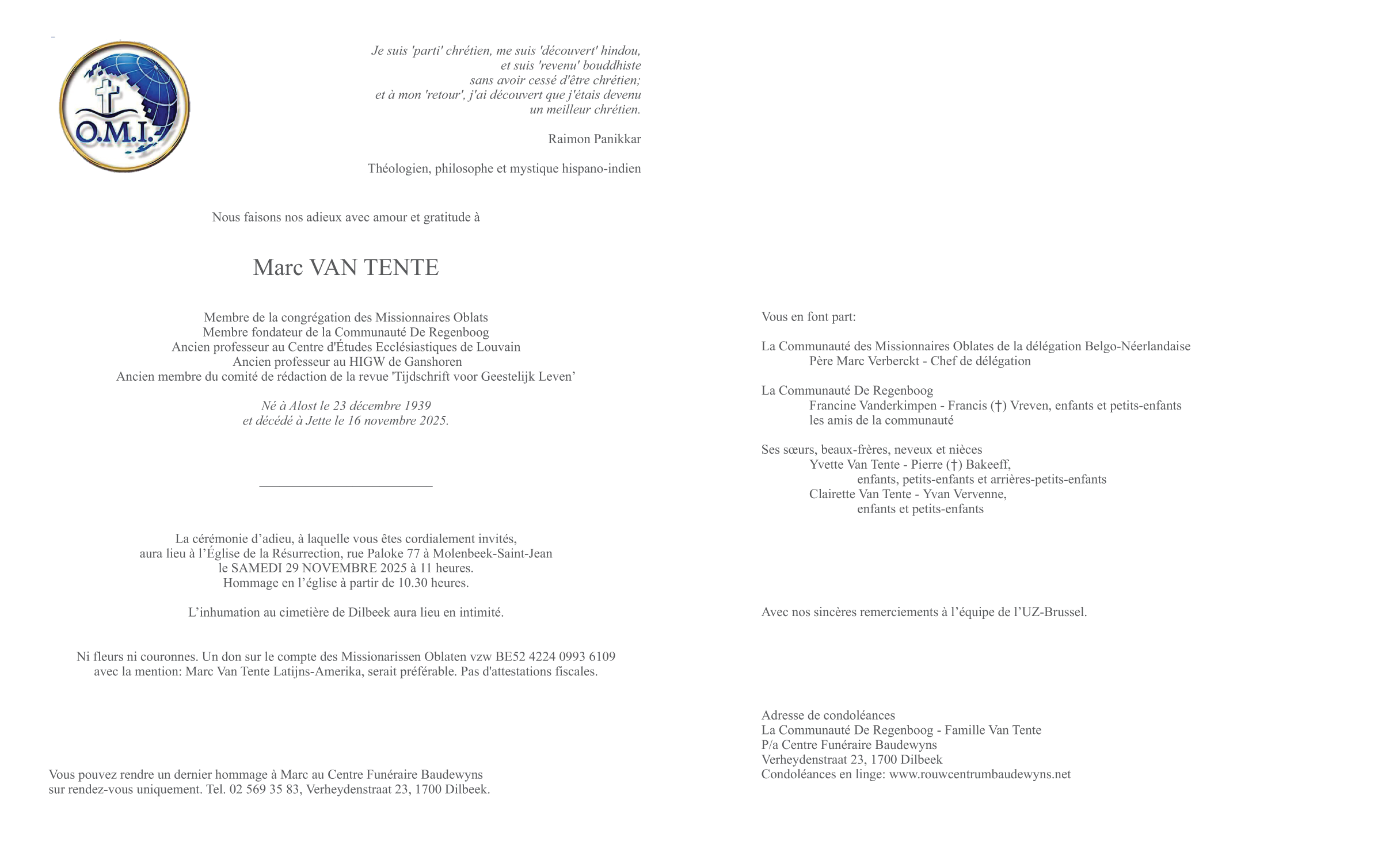 Décédé à Jette (1090) le dimanche 16 novembre 2025 à l'âge de 85 ans