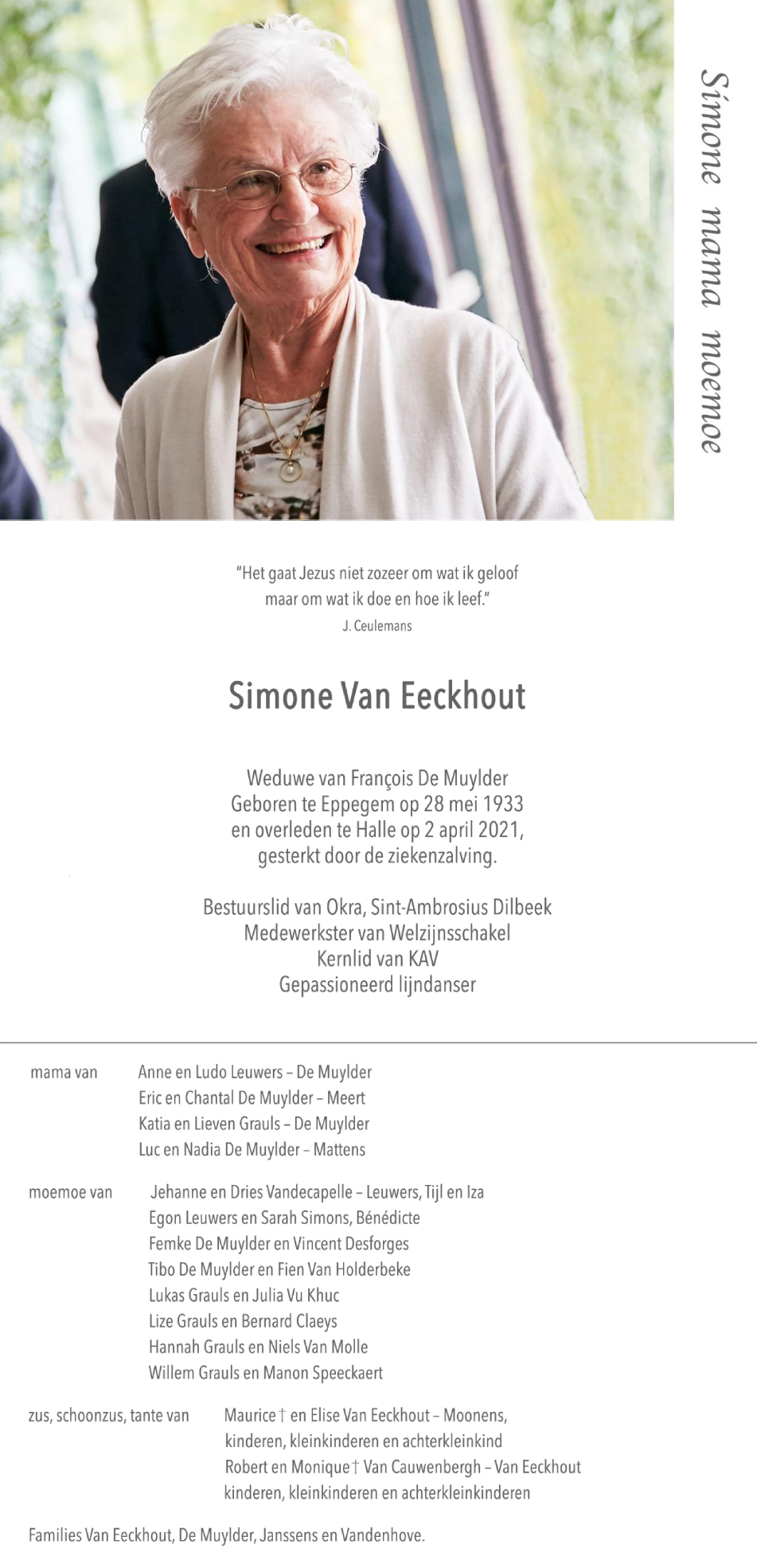 Décédée à Halle (1500) le vendredi 2 avril 2021 à l'âge de 87 ans